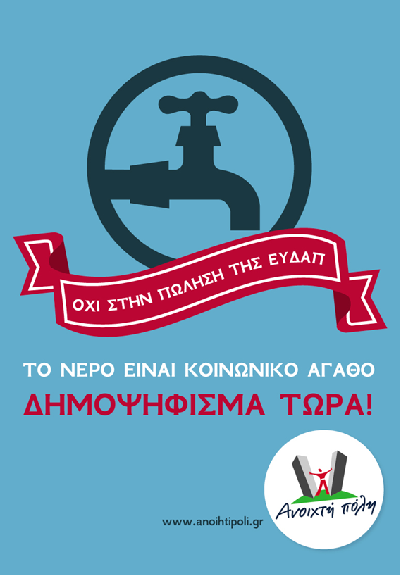 Στην Ευρώπη, οι δήμοι παίρνουν στα χέρια τους την υπόθεση του νερού και προχωρούν σε νέες λειτουργικότερες μορφές διαχείρισης επ’ ωφελεία του συνόλου των πολιτών. Στην Ελλάδα βαδίζουμε αντίστροφα. Θέσαμε το θέμα στο δήμο Αθηναίων (7/3/2013) και προτείναμε τη λήψη απόφασης με πρώτο σημείο να σταματήσει η διαδικασία ιδιωτικοποίησης της ΕΥΔΑΠ. Στη συνέχεια, σε συνεργασία με τους εργαζόμενους και τα κινήματα για την υπεράσπιση των δημόσιων αγαθών, μπορούμε να συζητήσουμε τον εκσυγχρονισμό και την ανανέωση των παρεχόμενων δικτύων και υπηρεσιών.