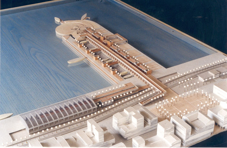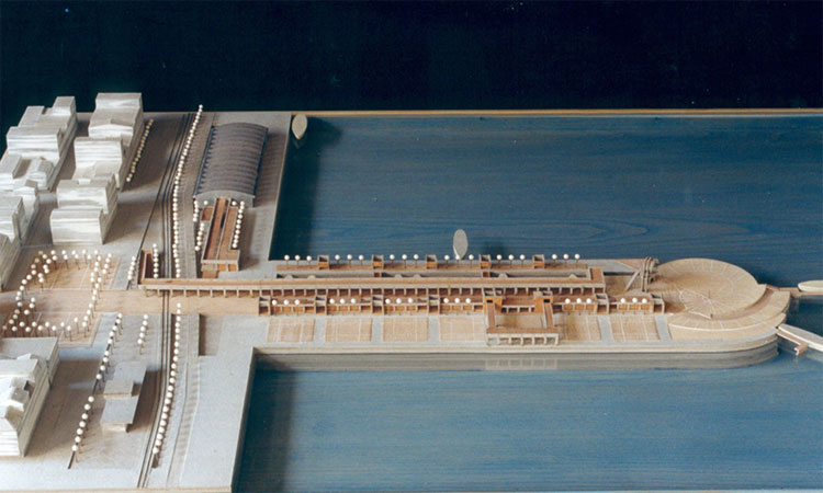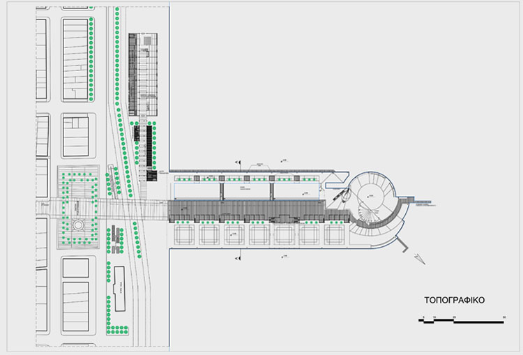 Το βασικό στοιχείο της σύνθεσης είναι ένα ξύλινο κατάστρωμα στην προέκταση της οδού Αγ. Νικολάου που ορίζεται από τη μια πλευρά με ελαφρές κατασκευές –μαγαζιά και από την άλλη με το υδάτινο μέτωπο της υπαίθριας έκθεσης παλαιών σκαφών και την εξέδρα θέασης. Επανεμφανίζεται έτσι το μικρό εύρος του παλαιού μώλου που αποτελούσε ένα δρόμο στη θάλασσα.