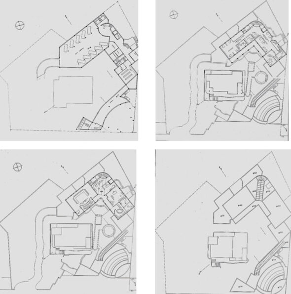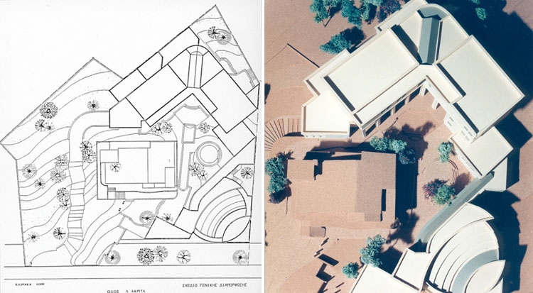 Επιλέγουμε την κλιμάκωση και τη σχετική διάσπαση των όγκων ώστε να προσαρμοστεί το κτίριο στο οικόπεδο, το υπάρχων κτίριο και το περιβάλλον του οικοδομικού τετραγώνου.